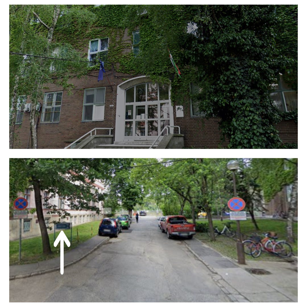 Milyen klinikán járunk — és honnan tudjuk meg, melyik épületnél? Az épületről biztosan nem, szerencsére van egy kék tábla a másik oldalon…