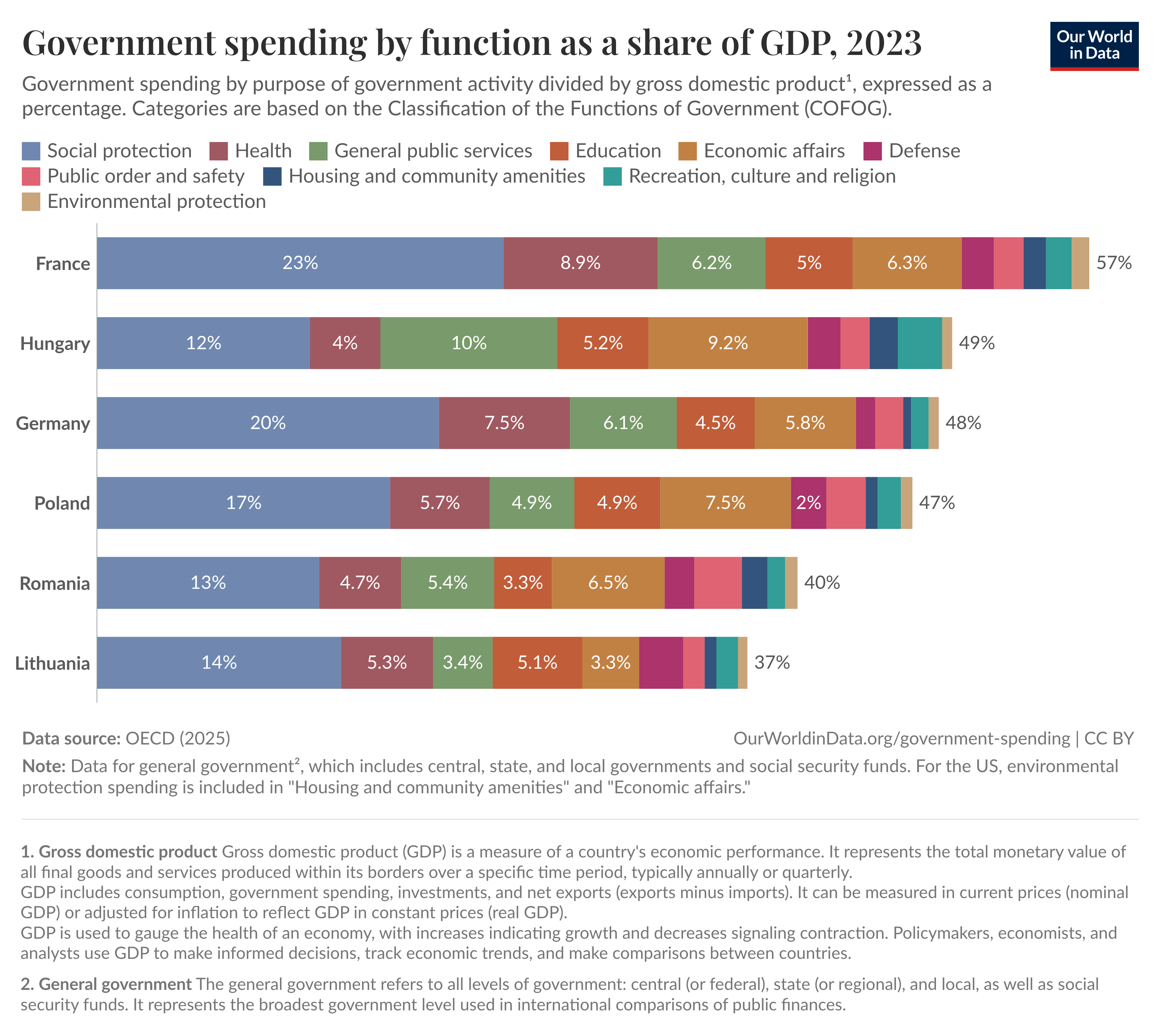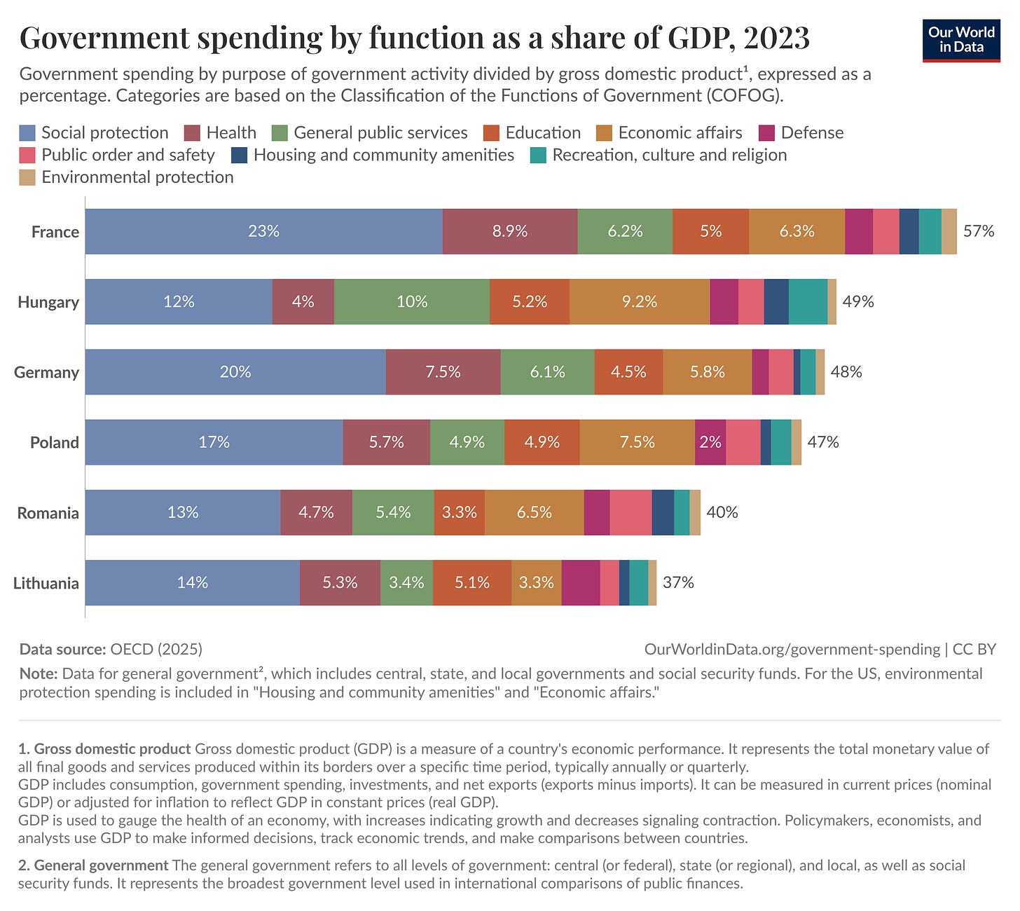 Az egészségügy szempontjából akár mellékes is lehetne, hogy mire ment ez a pénz, de lehet, érdemes egy percet mégis megállni itt. Az alábbi ábra egy nemzetközileg bevett módszer szerint csoportosítja a kormányzati kiadásokat területenként, és nemzetközi összehasonlításban mutatja be. Magyarországon elképesztő méreteket öltött a költségvetési kiadásokon belül az úgynevezett gazdasági ügyek aránya. Hogy mit takar ez? Közlekedés, kommunikáció, mezőgazdaság és persze energiapolitika. Ez az a tétel, ami látványosan nagyobb, mint más országoknál. Ha valaki példát keres, tekintse a mohácsi hidat. Megkockáztatjuk, még Mohácson is jobban örülnének, ha az egészségügybe ment volna az a háromszáz milliárdnál is több, ami egy olyan hídra lett költve, ahol emberek nem nagyon közlekednek.